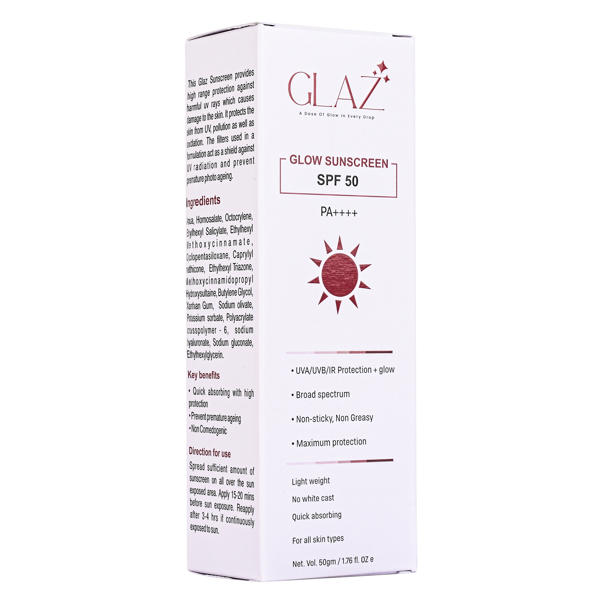 Glaz Glow Sunscreen SPF 50+ PA++++ stands out in the crowded sunscreen market through its science-backed formulation and multi-functional benefits. It combines high-performance UV protection with skincare-driven hydration and a universally flattering finish. Here’s why it’s exceptional: